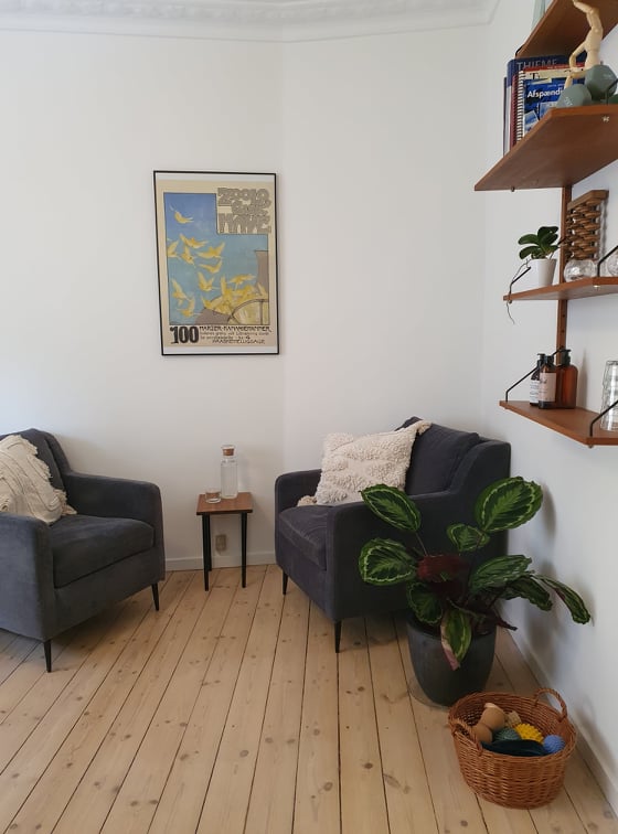 Jeg tilbyder terapi og behandling hver mandag og onsdag mellem kl. 9 og 17 på Nordlandsgade 22, 1. sal tv., 2300 København S